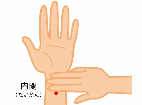 +3本のうちの1本を手首にある「内関」に打ちます。